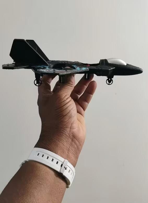 ✔ Quad-propeller system (visible on wings) – Provides superior stability and manoeuvrability during flight.