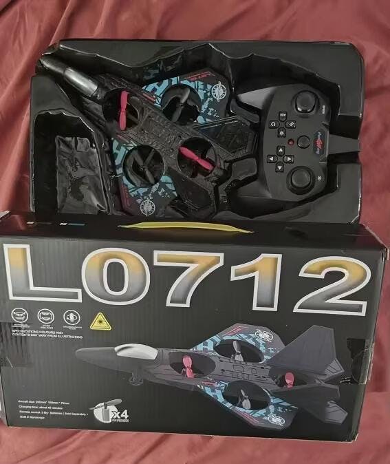 L0712 Remote Control Fighter Jet – A dynamic quad-prop RC aircraft designed for thrilling aerial stunts and stable flight control, perfect for aviation enthusiasts aged 14+.